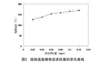 2)每齒進給量對銑削溫度的影響