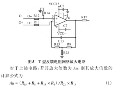 T型網絡不僅可以實現較大的放大倍數,而且電路中的電阻均小于1MΩ,在實現較大放大倍數的同時,消除了溫度漂移帶來的影響。
