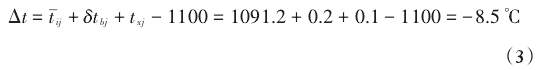 其中,ti為第i個位置移動偶的實際值,℃;`tij為第j個位置移動熱電偶的平均值,℃;δtbj為監控偶在第j個位置讀數與0位置讀數的差值,℃;txj為第j個測試點標準熱電偶的修正值,℃;△t為溫度偏差,℃。