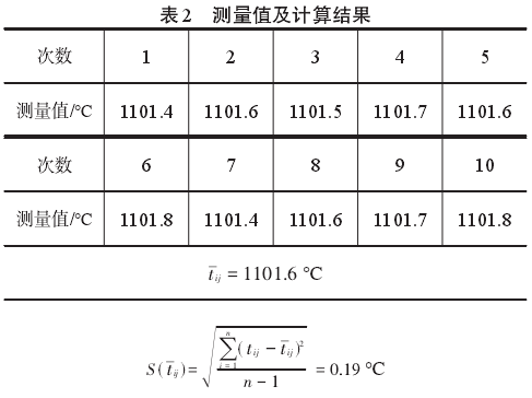 在退火爐校準溫度為1100℃時,進行重復測量。測溫儀器得到各個位置測試點的測量值,每個測試點讀數分別為tij,...t4j其平均值記為`tij。