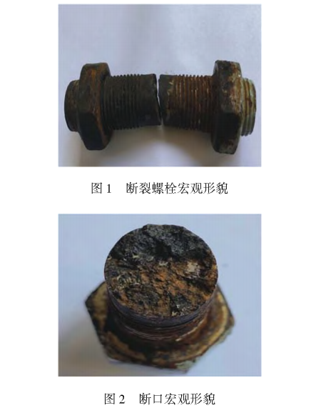 該裝置氯氣壓縮機(jī)壓力變送器閥門法蘭共有4根固定螺栓,2021年4月10日,其中1根螺栓發(fā)生斷裂,導(dǎo)致密封失效。斷裂螺栓材質(zhì)為奧氏體304不銹鋼,規(guī)格為M16雙頭螺栓,于2017年9月安裝使用。本文從斷口、化學(xué)成分、金相組織、硬度、環(huán)境因素等方面對螺栓斷裂失效原因進(jìn)行分析,并提出了改進(jìn)措施。