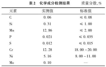 為了檢驗(yàn)斷裂螺栓的化學(xué)成分是否符合GB/T1220-2016技術(shù)要求,采用直讀光譜儀對斷裂螺栓進(jìn)行取樣檢測,結(jié)果見表2。