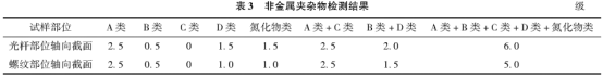 對斷裂螺栓光桿部位、螺紋部位分別取樣,按照GB/T10561--2005進(jìn)行非金屬夾雜物檢測,結(jié)果見表3。