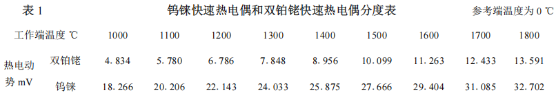 鎢錸熱電偶和雙鉑銠熱電偶在1000~18000℃的分度表對照見表1。
